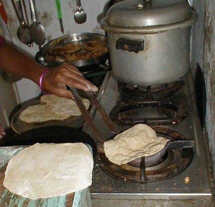 Called Rotli in Gugarati, Roti or Chapati in Hindi, it is the stable bread for most Indian cuisine. Used