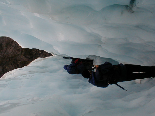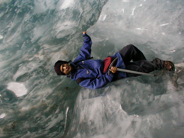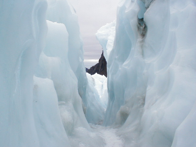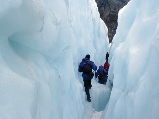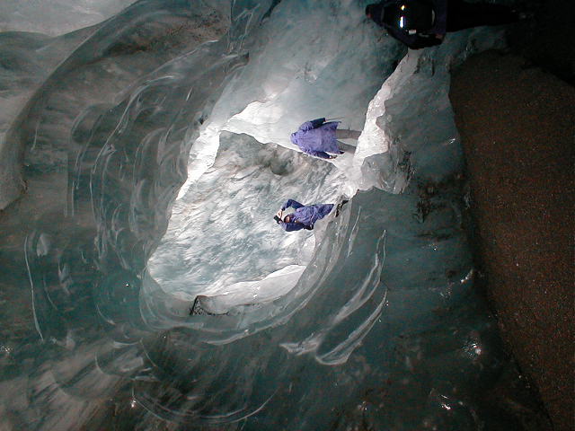 The pinnacles are nothing more than an adventure playground. At least that's what it was to us; the most beautiful adventure playground in the world. Our guide took us through an ice tunnel that led into an ice cave with the most fantastic blue and white mottled walls. From here we walked through narrow crevices, slid through ice holes, climbed into impossibly tight burrows, more grottos, all in this bizarre, unique ice world.