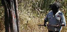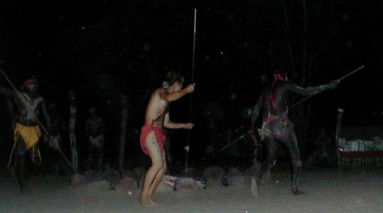 At the campsite, Kevin the resident Aboriginal expert and healer (Yo!) took us on a little walk about (in the 45c heat) and showed us some aboriginal bits and pieces; including trees that digiridoos are traditionally made from (the woolly-bark and stringy-bark trees), a traditional looking 'holy place', and a woomera (spear-thrower). We also learnt how to play the dig (ya say 'didge', it's short for digiridoo) - without even needing one (regginoull-regginoull-regginoull-regginoull-regginoull). Yugi was easily the best of us - he had the hand actions perfect - and he was asked to join in with some Aboriginal dancing with Kevin and the boys later that evening.