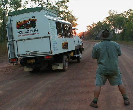 The first part of the trip, to Kakadu started at 6:45 this morning when Troy, our tour guide picked up the 16 of us in our 4 wheel drive truck cum bus. We've a fair mix of folks on the bus, 2 danish girls, four Japanese; including Yugi, Steve & Ania from the UK and Poland, a Swedish lady, Nathanial from USA, and finally Emma, Nikki, Heather and myself from the UK.