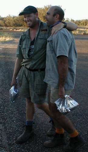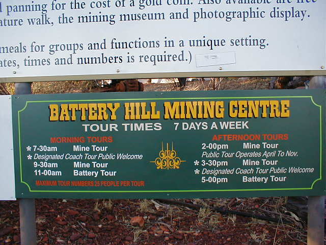Tennant creek is, or was, a gold mining town. Before that it was a telegraph repeater station. The telegraph operators would go looking around for gold (fossicking) when they were off duty and bored. One day, Frank, a local Aboriginal brought a rock up to the station and asked the 'white fellas', "Is this is what you're looking for?". The rock turned out to contain large quantities of the gold that the men were looking for and the gold rush had started. Australia was going through a major depression at the time, 1932, and people walked from all over the country to get a part of the pie (gold!). Yes, walked. There are stories of people walking from Sydney which is over three thousand kilometres away. It was (in some cases anyway) worth it. There are more millionaires per capita here than any other town in Oz. The commercial mine that was subsequently set up in the town finally closed in 1995. It had been making $1mill/wk for the 65 years that it was open. The town is set up about 7 km from the original telegraph station. Why was it set up so far away from the most logical place to set it up? The answer is simply, booze (alcohol ). A guy (I didn't find out his name) thought that the miners could probably do with a drink. So he packed a load of grog (alcohol ) into a cart and drove it up to Tennant's Creek - only he didn't quite make it. The axle on cart broke 7 km short of the town. Rather than carrying the beer to them, he figured that the miners would come to him if they were thirsty enough. They were, and they did. The pub was established in 1934.