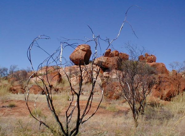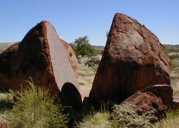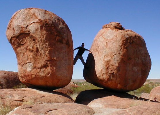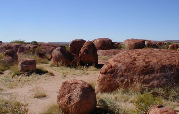 We stopped off at the Devils Marbles (known as Karlwekarlwe or Karlu Karlu in the local languages). They are apparently the Rainbow Serpant's eggs that she left here on her way out of Arnham land.