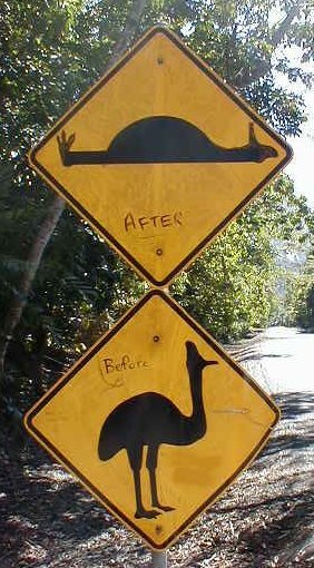 The trip up is along the Cook Highway. It's pretty straightforward to get up there - I'd hire something and do it myself if I was to go again. We stopped off at a rainforest habitate on the way up and saw all sorts of creatures that we probably weren't going to see in the forest itself. One of the critters ( animals ) was a cassowary. It's a bird, of anything up to 2m tall, that looks more like a dinosaur than anything else.