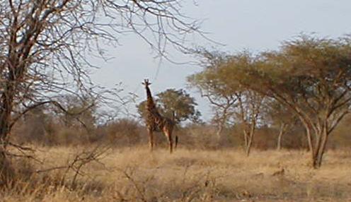 giraffe (Giraffe camelopardalis) from the jeep. Our camp's set in